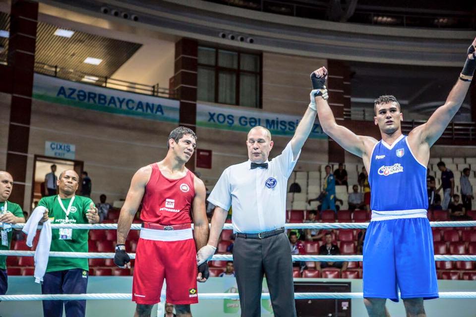 Quarta giornata di gare in quel della La Sardaachi Arena di Baku (2200 posti a sedere) per il Torneo Mondiale di Qualificazione Olimpica con in palio 39 pass per Rio 2016. Sono tre gli azzurri sul ring quest'oogi: Picardi (16° 52 Kg vs Sopinskyi UKR); Cosenza (16° 64 Kg vs Sakenov KGZ); Vianello +91 Kg (8° vs Lima Duarte BRA). Apre Vianello che supera 3-0 ilBrasialno Duarte, volando ai quarti dove sfiderà il cinese Mu martedì 21. Nella serata azera, Picardi doma (3-0) l'ucraino Sopinskyi, conquistando gli 8° nei quali dovrà confrontarsi con il tagiko Rakhmatshoev TJK (Martedì 21). Perde 3-0 Cosenza nel suo match contro Sakenov. "Ottime" queste le parole del Team Leader Borghino" di Vianello e Picardi. Il primo, di fronte a un avversario scorbutico, è partito piano uscendo nel finale. Il secondo ha dato prova di essere in gran forma e molto determinato a raggiungere l'obiettivo della qualificazione. ha vinto anche grazie alla sua enorme esperienza. Cosenza, purtroppo, ha trovato un aversario molto più esperto di lui. Donato comunque ha dato tutto per trovare la vittoria."