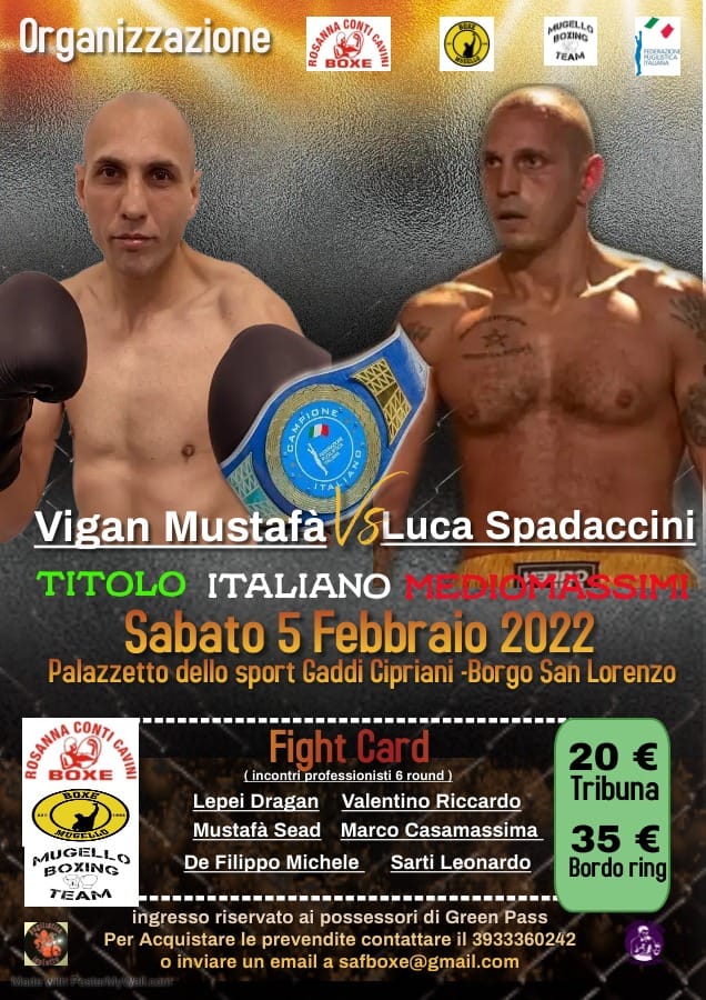 Borgo San Lorenzo Boxing Night: il 5 Febbraio Spadaccini vs Mustafa per il Titolo Italiano Mediomassimi - INFO SOTTOCLOU