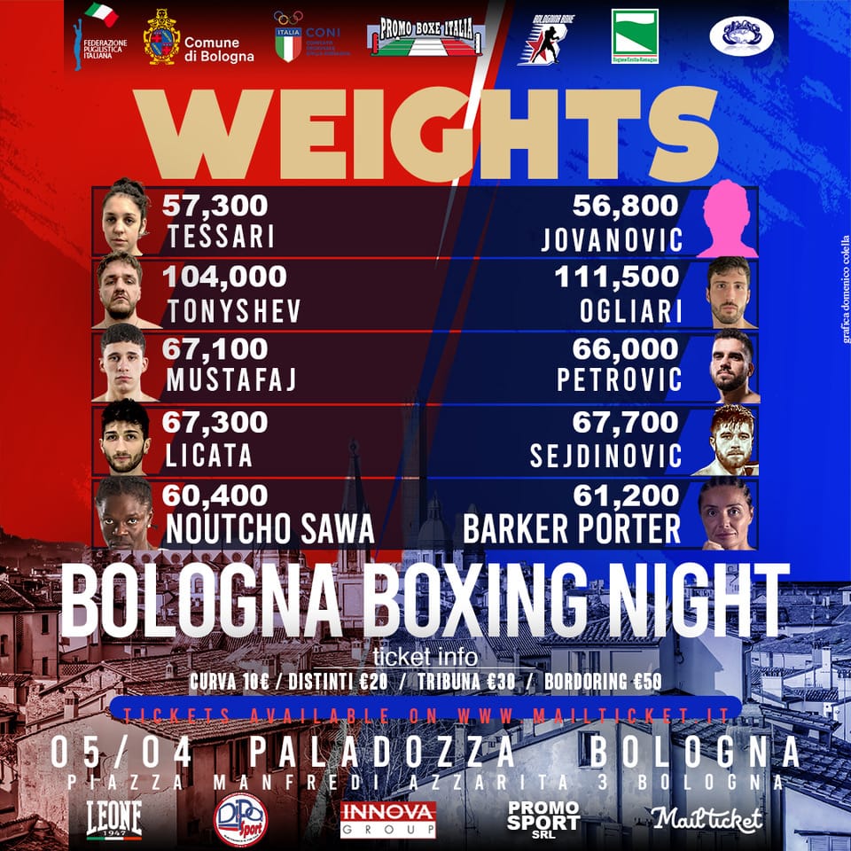 TUTTO PRONTO A BOLOGNA PER LA SFIDA NOUTCHO VS PORTER PER l'EBU SILVER FEMMINILE DEI LEGGERI - INFO LIVESTREAMING
